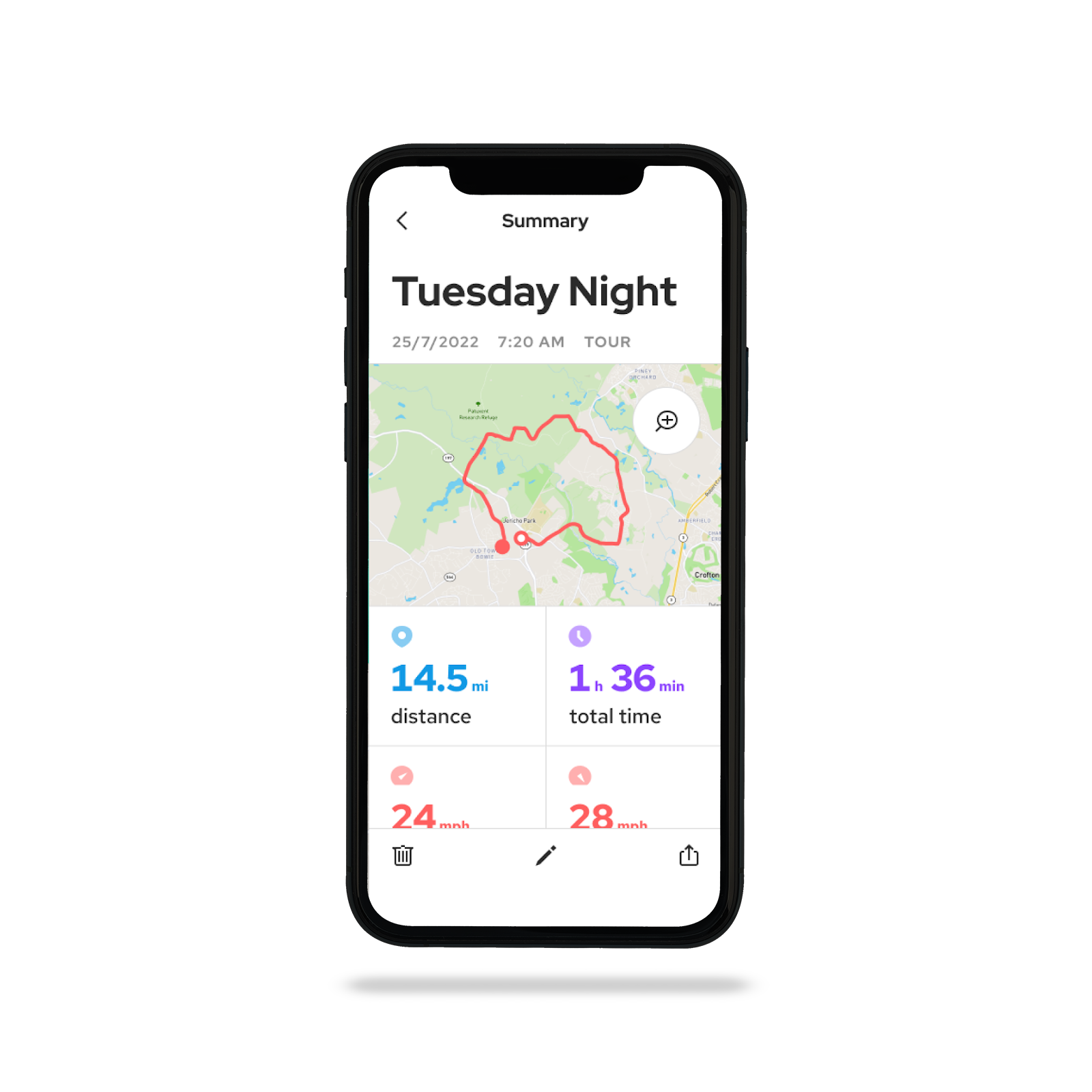 Tracke deine Fahrt in Echtzeit und überwache Leistungsdaten wie Zeit, Entfernung, Geschwindigkeit und Herzfrequenz (Herzfrequenzmesser separat erhältlich), um deine Fortschritte und Leistungen zu kontrollieren, auf deine Ziele hinzuarbeiten und deine Ergebnisse zu maximieren.