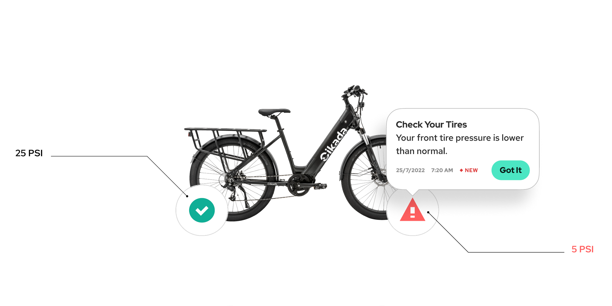 Du erhältst Wartungsmeldungen, Fehlermeldungen und Warnungen über den aktuellen Reifendruck (Reifendrucksensor ist separat erhältlich), um dein E-Bike in einem erstklassigen Zustand zu halten und deine Smile Rides in vollem Komfort und Sicherheit zu genießen.