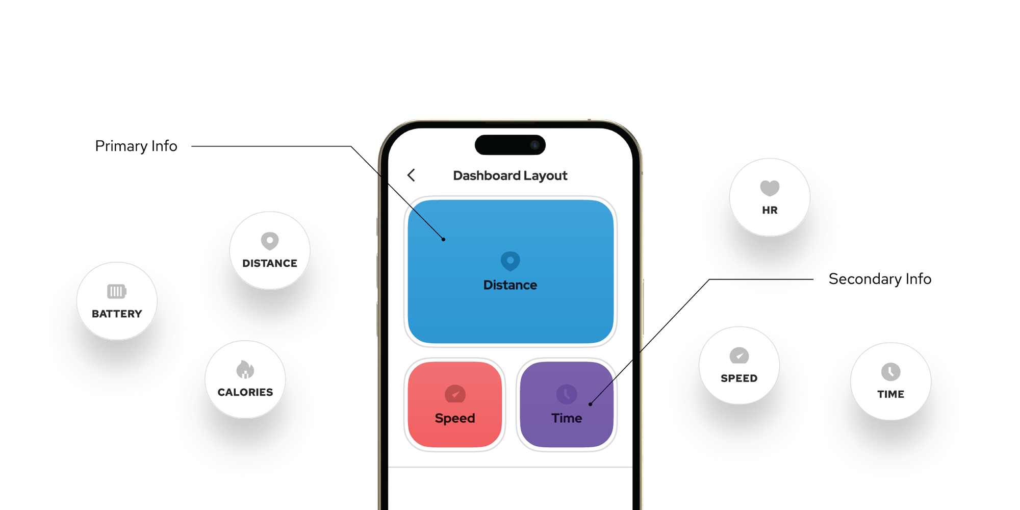 Du entscheidest, wie und wo dir Leistungsstatistiken angezeigt werden. Behalte zu jeder Zeit den Überblick & Kontrolle über deine Fahrt.
