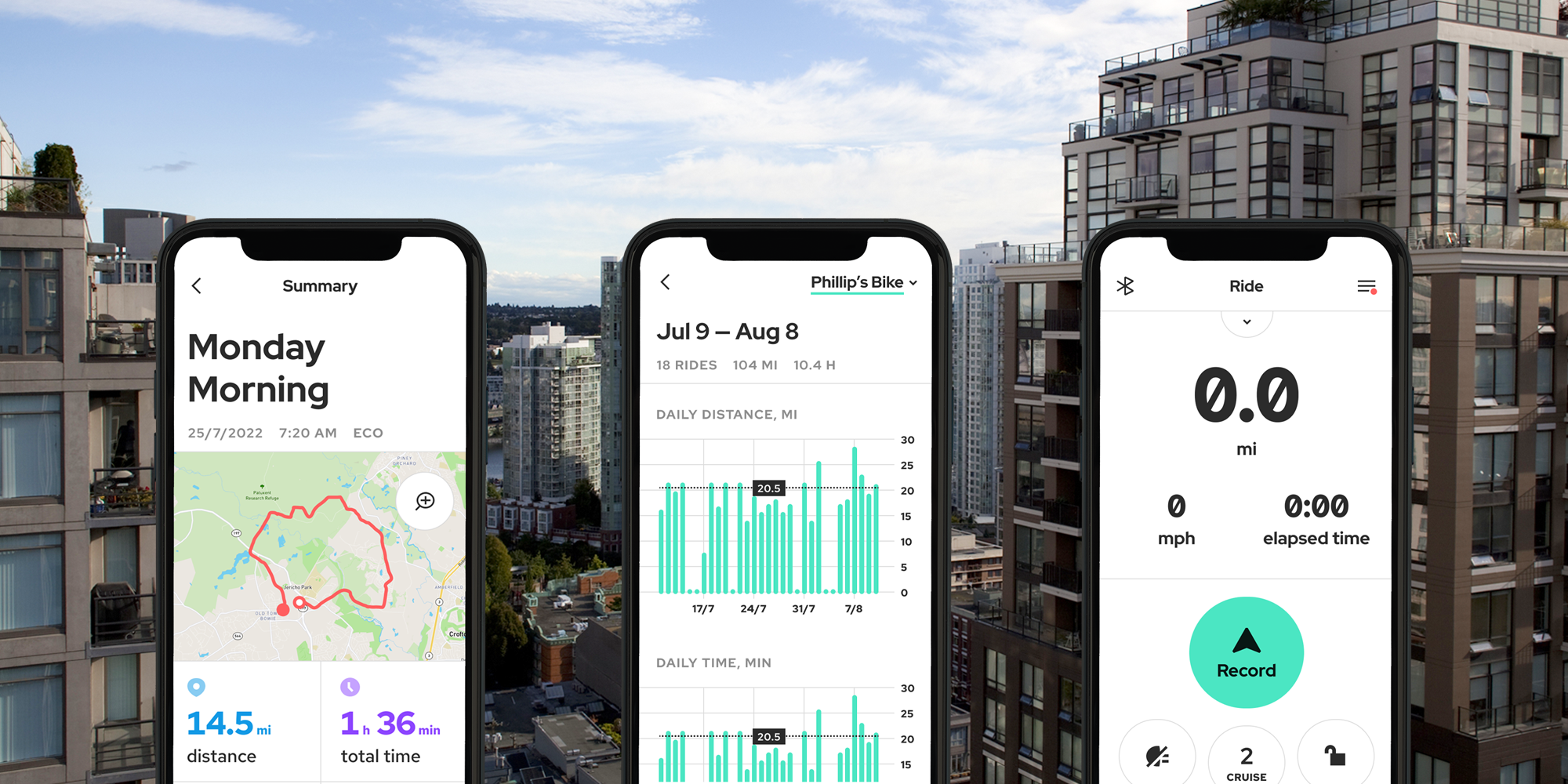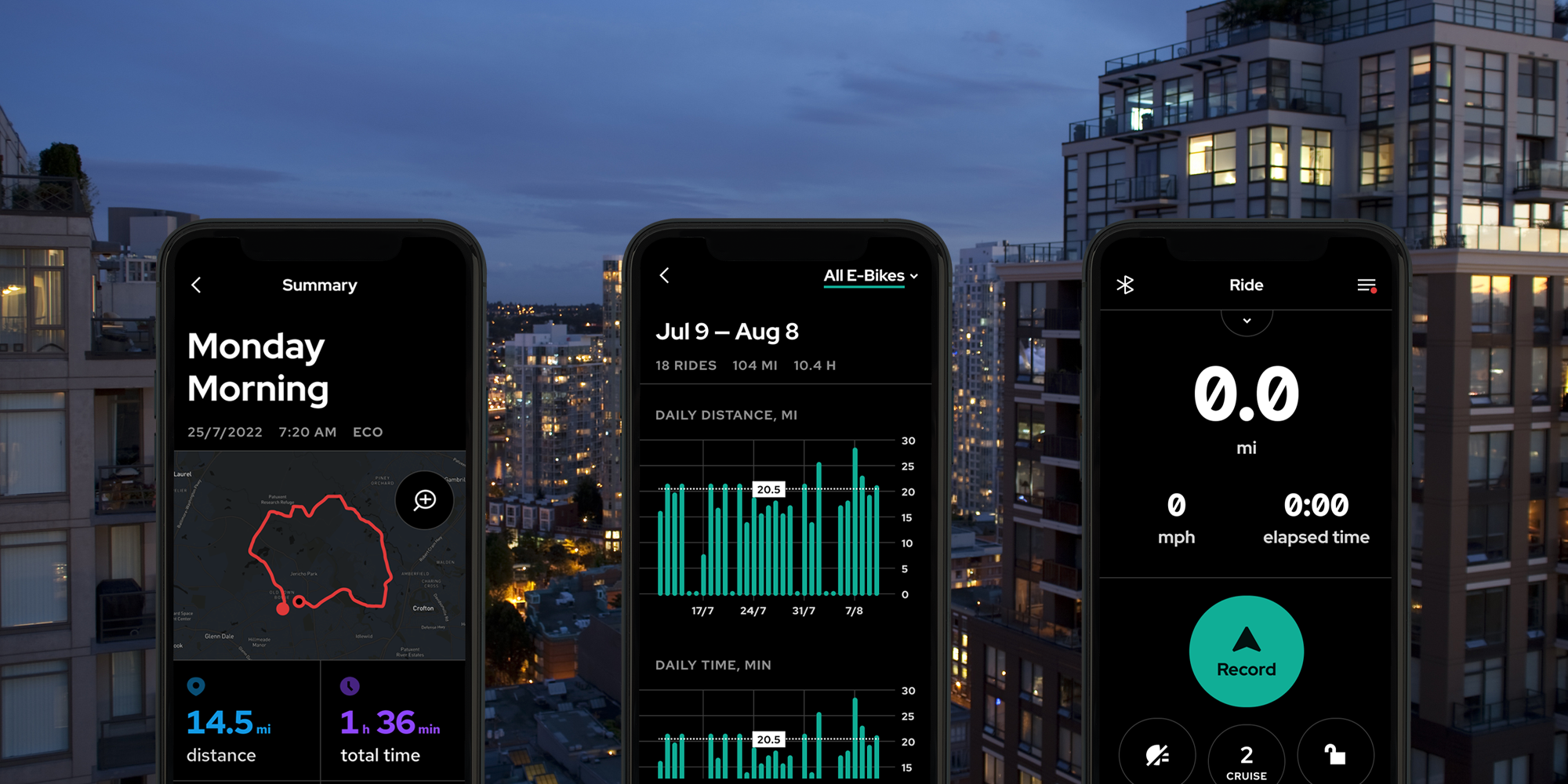 Erwecke deine E-Bike-Abenteuer zum Leben und analysiere deine Leistung, wenn du dein Ziel erreicht hast.