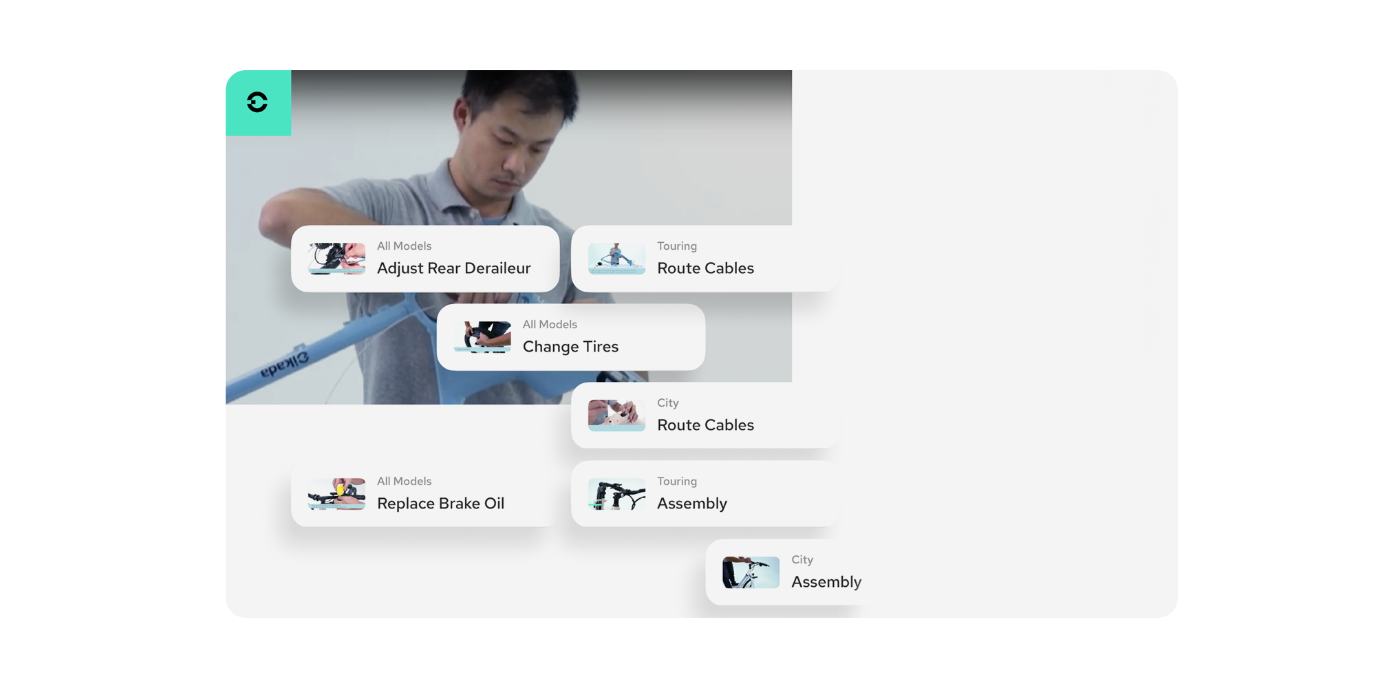 Schau dir direkt in der App Video-Tutorials und Schritt-für-Schritt-Anleitungen an, um dein E-Bike nach Anleitung zu montieren und zu warten.